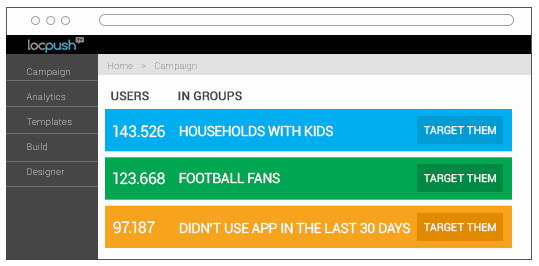 A sophisticated rich push notifications and user engagement service especially built for TV Service Providers. Add locpush.tv to your existing TV mobile app and WebTV service and start launching push marketing campaigns that engage your audience.